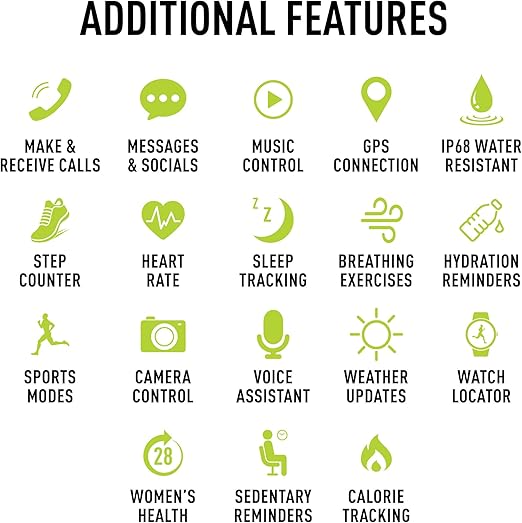 Technology: Bluetooth calls, notifications, health tracking